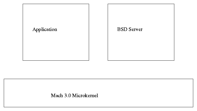 The UNIX 4.3BSD code has been modified to use the kernel services (memory management, processor scheduling, messages, and so on) of the Mach kernel. Mach 3.0 restructures the system so that the UNIX 4.3BSD code runs in user space, as a BSD server. An application, running in user space, makes requests to the BSD server by messages. The Mach 3.0 kernel provides support for messages, virtual memory, processor scheduling, and device I/O, but the BSD server provides the policies and functions which make this into a UNIX operating system.