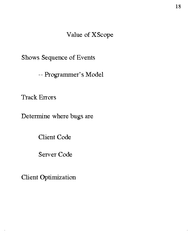 the development of two pseudo-servers for X11: Xscope and Xprog.